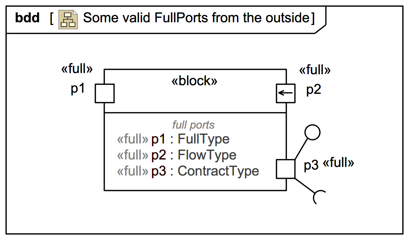A FullPort can be port with a contract of provided and required DirectedFeatures, or a port with one or more FlowProperty items, or it may be specify a contract using provided and required Interfaces.
