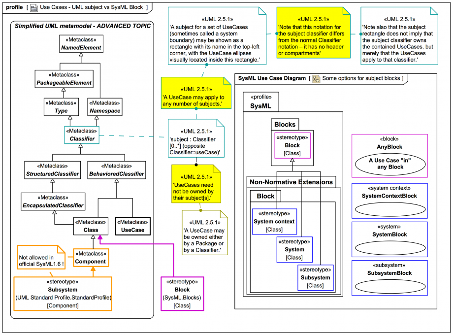 The second common misconception concerns the notation itself. A Classifier (such as a SysML Block) acting as a subject may different on a UseCase Diagram than in other diagrams: