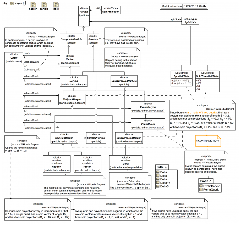 Another thing to consider is this; having a concrete SysML block for each kind of known or predicted baryon (and there are lots of them) gives you a place to document that baryon - including specific experimental data about each one.