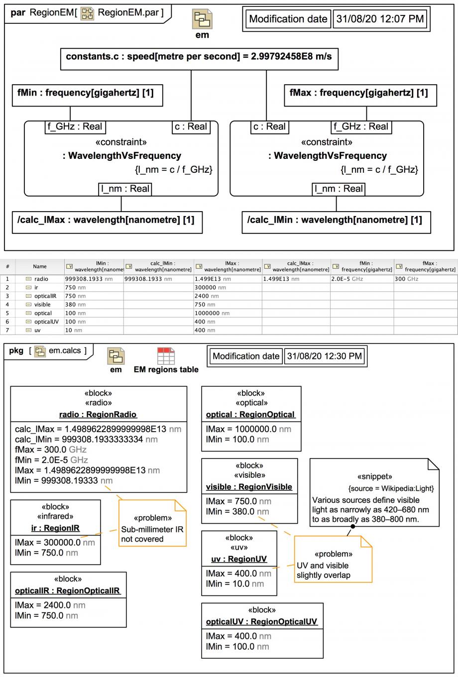 There is a slight overlap between UV and visible as gleaned from Wikipedia so far, but this is not a big concern:More worrying is that sub-millimeter infrared is completely missing, but we saw earlier in the trail how taking values from partially inconsistent snippets from Wikipedia has led to this (and we saw also how the Webel Parsing Analysis recipe for SysML enables us to record such issues).