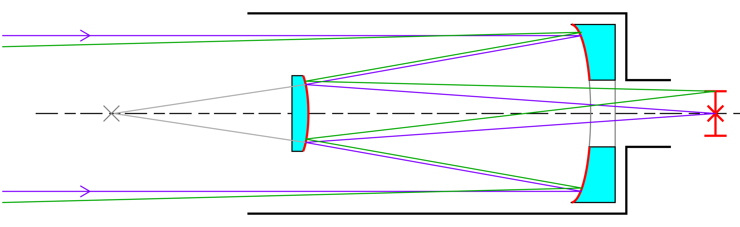Icon class icon_class fas fa-quote-left icon_class_computed fas fa-quote-left Related content The classic Cassegrain telescope has a parabolic primary mirror and a hyperbolic secondary mirror Source Wikipedia Copyright information Text from Wikipedia and Wiktionary web pages quoted for educational purposes is subject to the Wikipedia Creative Commons Attribution ShareAlike Licence Snippet kind INFO Keywords Cassegrain telescope Previous snippet Full quote Light path in a Cassegrain telescope. URL https://en.wikipedia.org/wiki/Reflecting_telescope Next snippet Image Image: Author Krishnavedala Image: Copyright licence Creative Commons CC BY-SA 4.0 Related snippets The Gregorian telescope ... employs a concave secondary mirror that reflects the image back through a hole in the primary mirror. This produces an upright image There are several large modern telescopes that use a Gregorian configuration such as the Vatican Advanced Technology Telescope, the Magellan telescopes, the Large Binocular Telescope, and the Giant Magellan Telescope. The Gregorian telescope consists of two concave mirrors; the primary mirror (a concave paraboloid) collects the light and brings it to a focus before the secondary mirror (a concave ellipsoid) where it is reflected back through a hole in the centre ... There are telescope designs that do not present an inverted image such as the Galilean refractor and the Gregorian reflector. These are referred to as erecting telescopes. Related snippets (backlinks) Visit also Visit also (backlinks) Flags