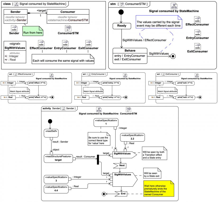We are going to send a Signal(Event) that carries multiple values (attribute Properties) to a StateMachine, where it will be consumed by one of: