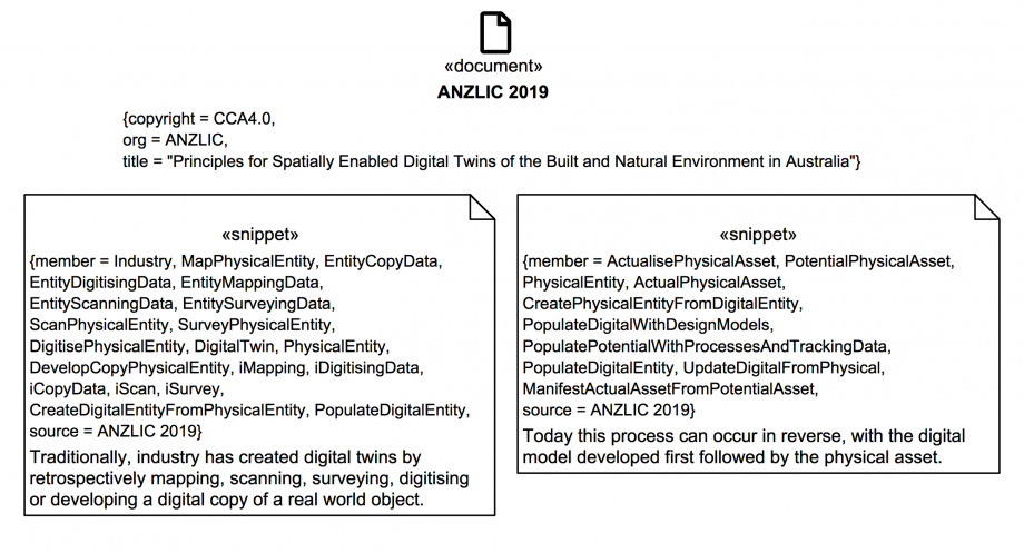 We shift the trail topic now to interpret as SysML and then simulate this text from the ANZLIC 2019 source document: