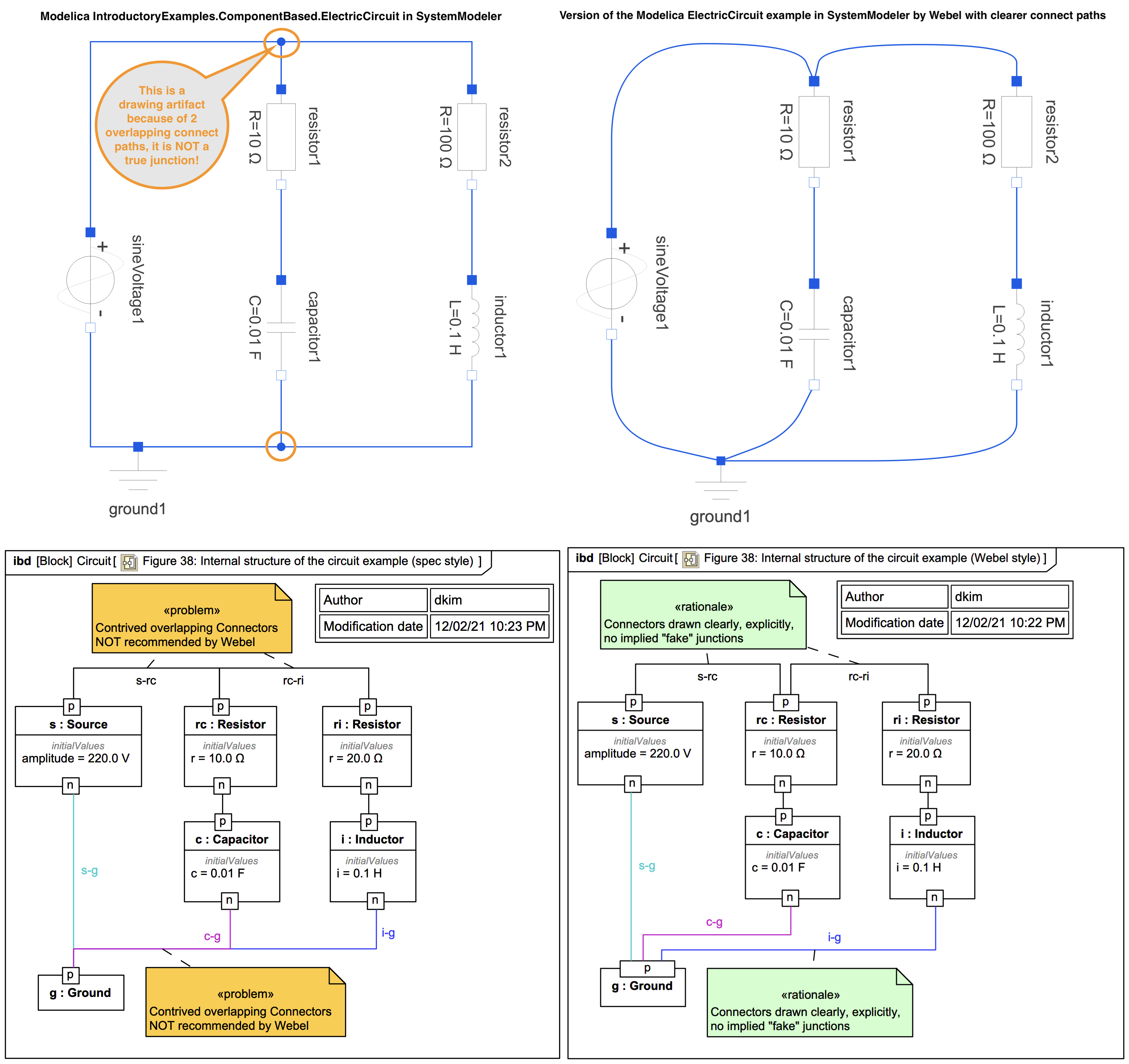 There's another SysPhS electronics counter-example here: And here: Remember:In Modelica there is no explicit support for a "node". For electrical systems one can use an explicit Pin. See also: Is it possible to add a node to a circuit model in SystemModeler?