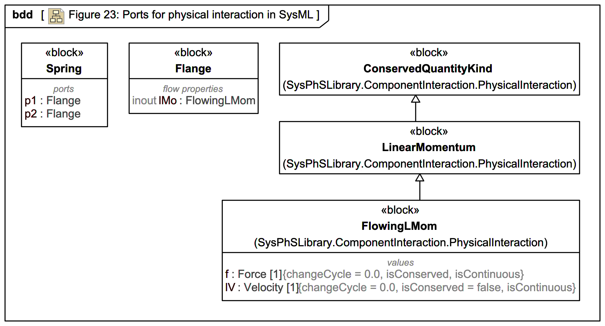 If you export the model as shown to Modelica from the MagicDraw SysML Plugin or Magic Cyber-Systems Engineer ® (Cameo Systems Modeler®) v19SP3 you get: