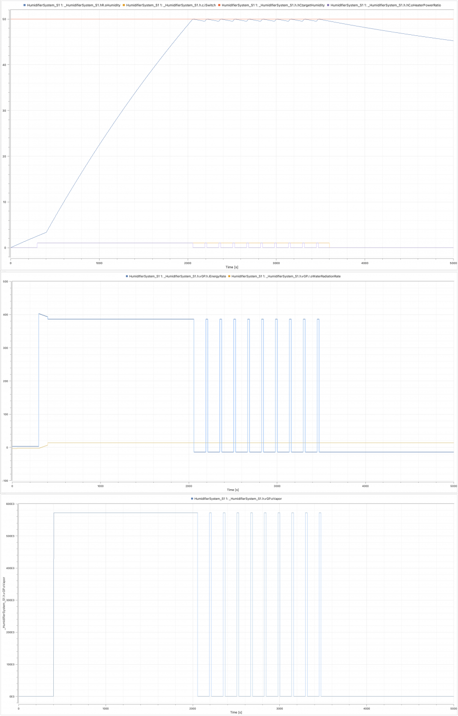 These plots show some values from a typical simulation execution in Wolfram SystemModeler.