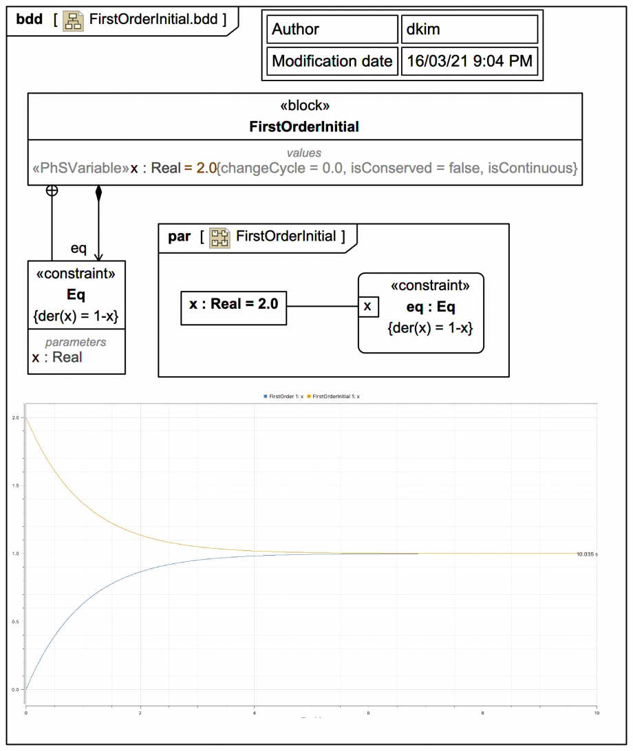 The SysPhS version as formulated here is slightly different from the Modelica By Example target version, which used an explicit 'initial equation' rather than 'start' and 'fixed':