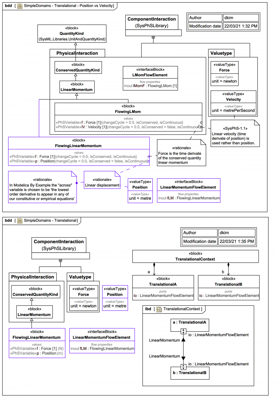 are introduced, from which an equivalent Modelica connector can then be generated via SysPhS as part of a minimal translational system: