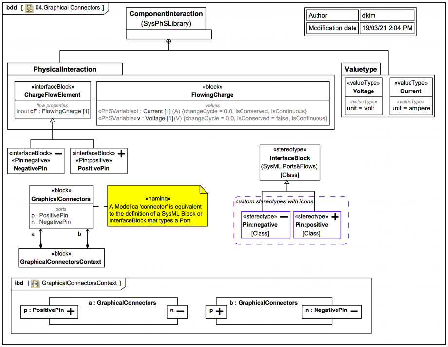 , with corresponding custom stereotypes applied. A block GraphicalConnectors