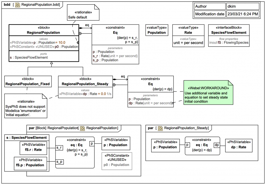 So the case of initialisation against steady state is handled in this SysML/SysPhS trail by an extending block RegionalPopulation_Steady