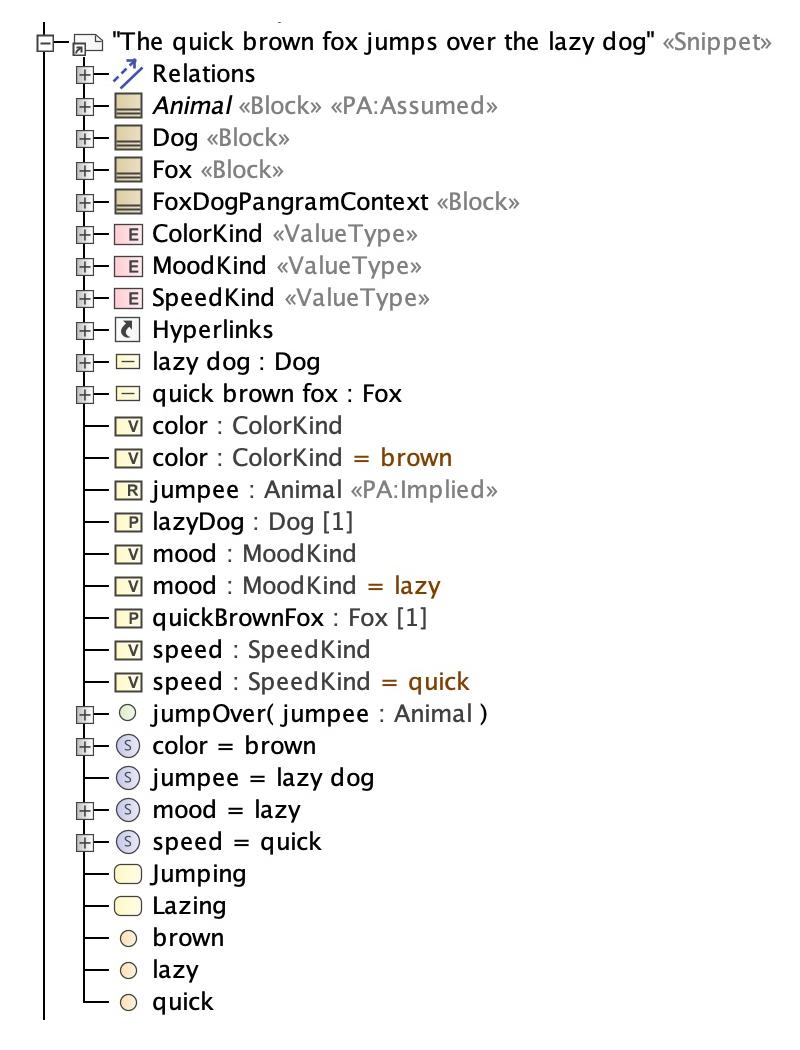 Shows a screenshot of part of the containment tree in the MagicDraw SysML Plugin or Magic Cyber-Systems Engineer® (Cameo Systems Modeler®) with the elements that were elicited from this Snippet: