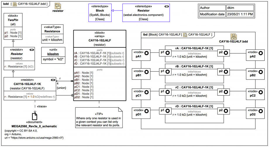 Note also the clear indication along (with copyright metadata) of the source of the data using a SysML Trace: