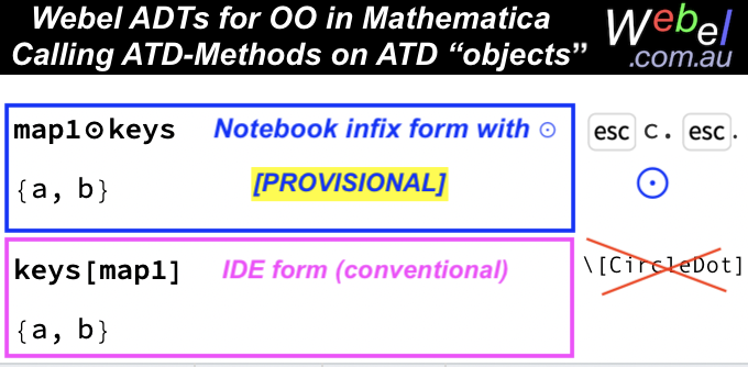 The use of CircleDot ⊙ as the infix operator for invoking ADT-Methods on Webel ADT "objects" is provisional: