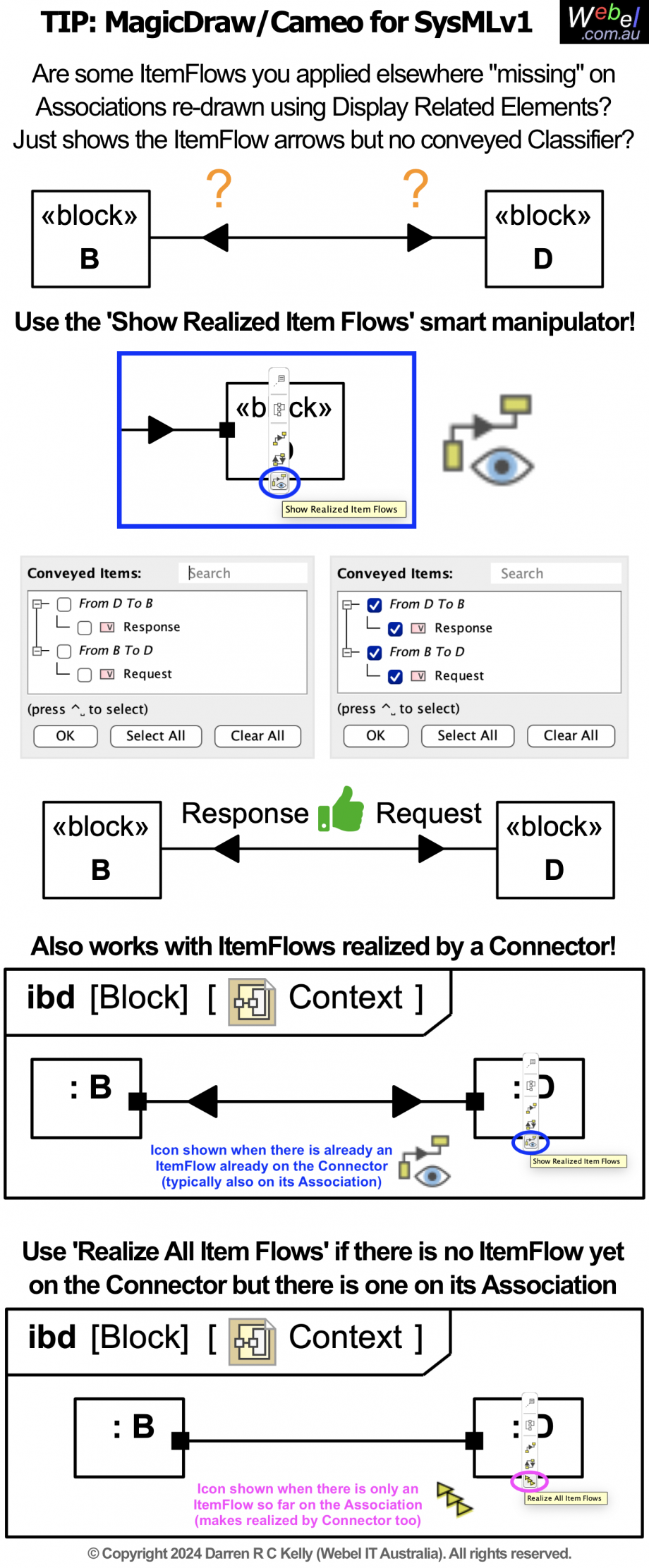 Every wondered where your ItemFlows have gone after using Display Related Elements to redraw an Association or Connector? Is the ItemFlow arrow showing but not the conveyed Classifier name?