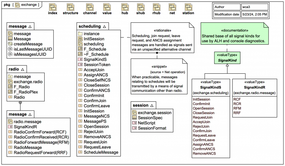 The 'exchange' Package Diagram also shows the additional SignalKind