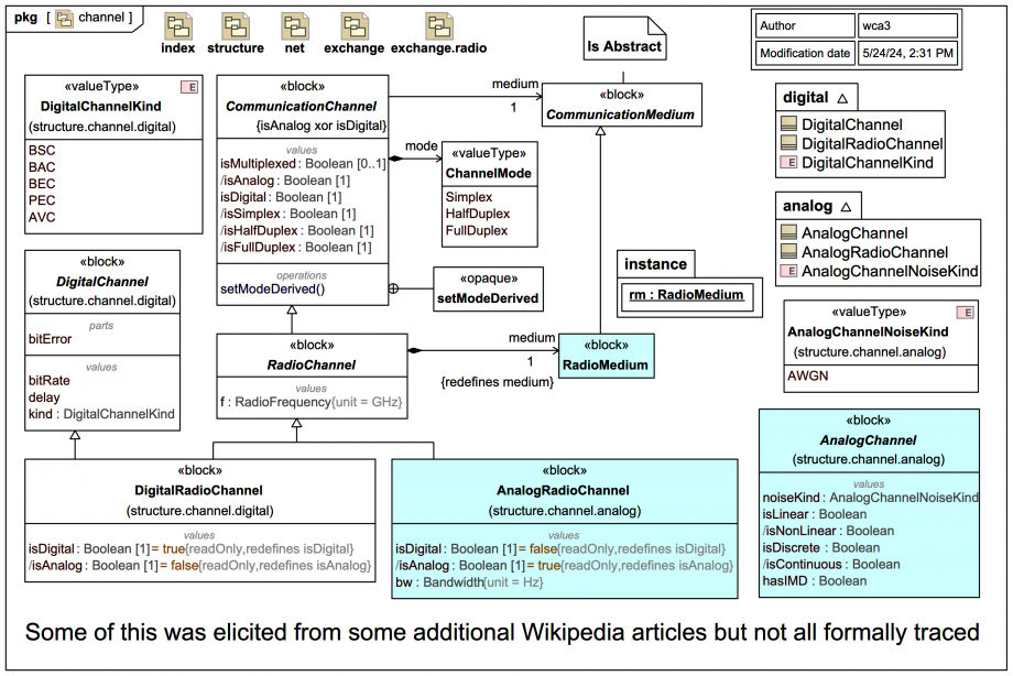 But in the pragmatic Webel Radio Net model there is no separate "problem" and "solution" spaces, and all exchange items are shared across the model and may freely reference elements in the 'structure' Model package.