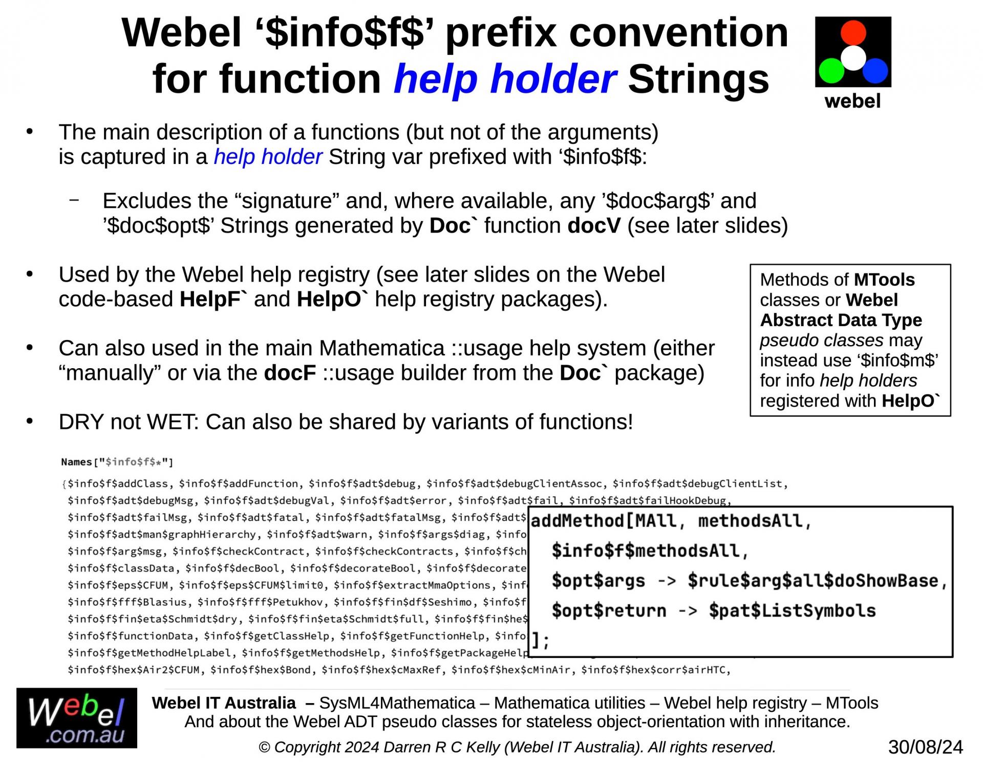 This SECTION is provided primarily for reference and may be skipped in favour of sections with application examples. Many examples of the use of the conventions explained in detail here appear in other slides. However, if you wish to understand why the Webel libraries for the Wolfram Language and Mathematica are coded as they are, this SECTION is essential reading!