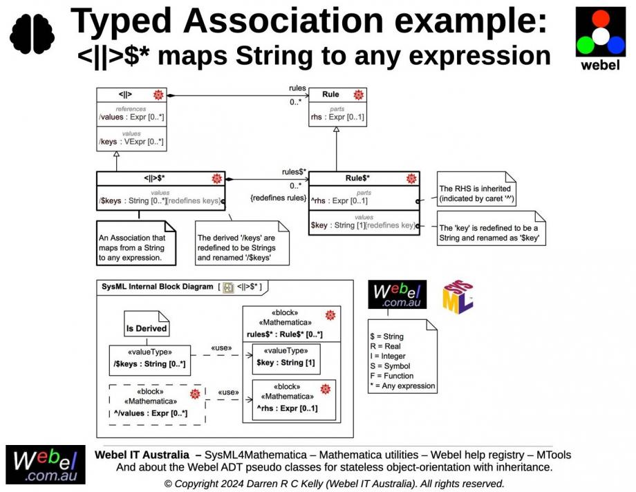 Gallery Tutorial [TECHNICAL SLIDE TRAIL] The Webel libraries for Wolfram Mathematica: With SysMLv1 models. Section SECTION: Modelling the Wolfram Language in SysMLv1 and related Webel coding conventions Tags and keywords Topic level ADVANCED Keywords Wolfram Wolfram Language Mathematica SysML MagicDraw SysML MD SysML CATIA Magic Systems Modeling Language Wolfram Player Pro Webel::SysML4Mathematica Webel IT Australia This content has been marked as discussing an ADVANCED topic! Click on the image to view it full size Up next “Active” OpaqueBehaviors corresponding to block Heads: Used in CallBehaviorActions Notes [CONVENTION, MODELLING, NAMING]{STRICT} Webel: SysML4Mathematica: An Association used as the Type of an argument or return is represented by a Block '<||>'. A List used as as the Type of an argument or return is represented by a Block '{}'. (Extending types may adapt the notation.) Snippets (quotes/extracts) Related slides (includes other tutorials) Related slides (backlinks, includes other tutorials) Visit also The Webel SysML4Mathematica recipe for modelling Wolfram Language code in Systems Modeling Language (SysML) for Model-Based Systems Engineering Visit also (backlinks) Flags Book traversal links for Typed Association example: <||>$* maps String to any expression Previous Up Next