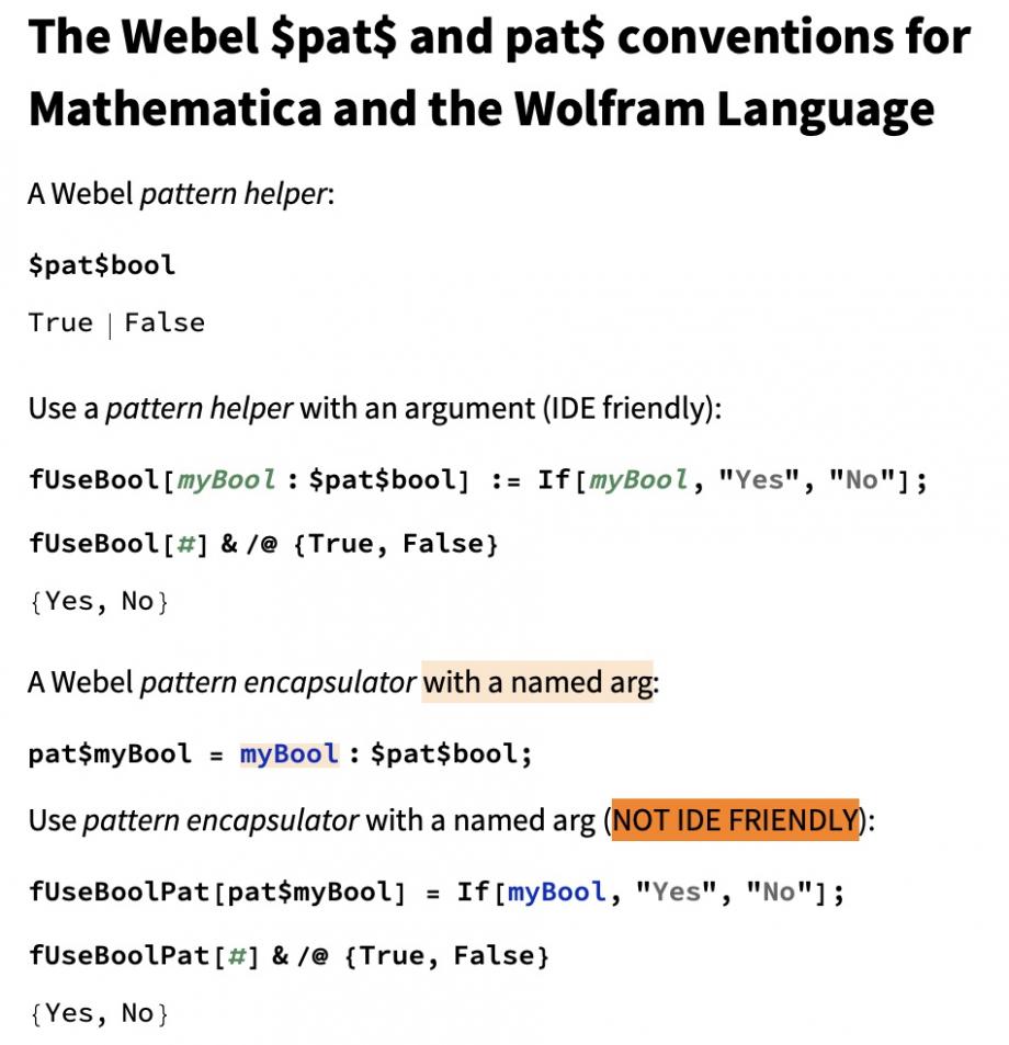 There is a detailed technical slide trail describing how the Webel naming conventions for Wolfram Language code work together: