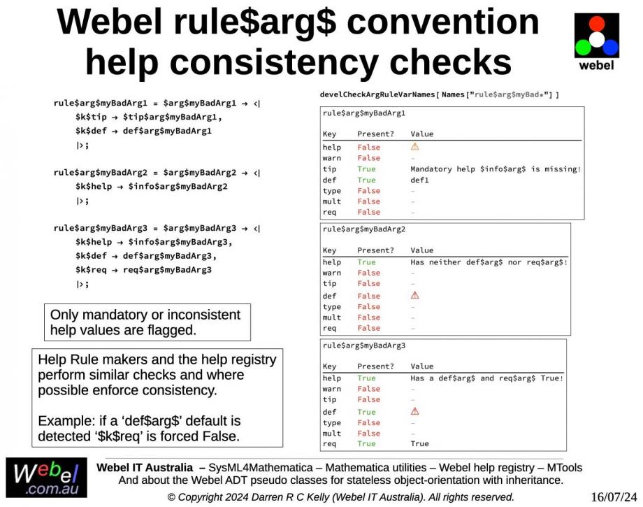 Development check functions can be run across Webel help Rules to ensure registered '$arg$' argument specs are compatible with: