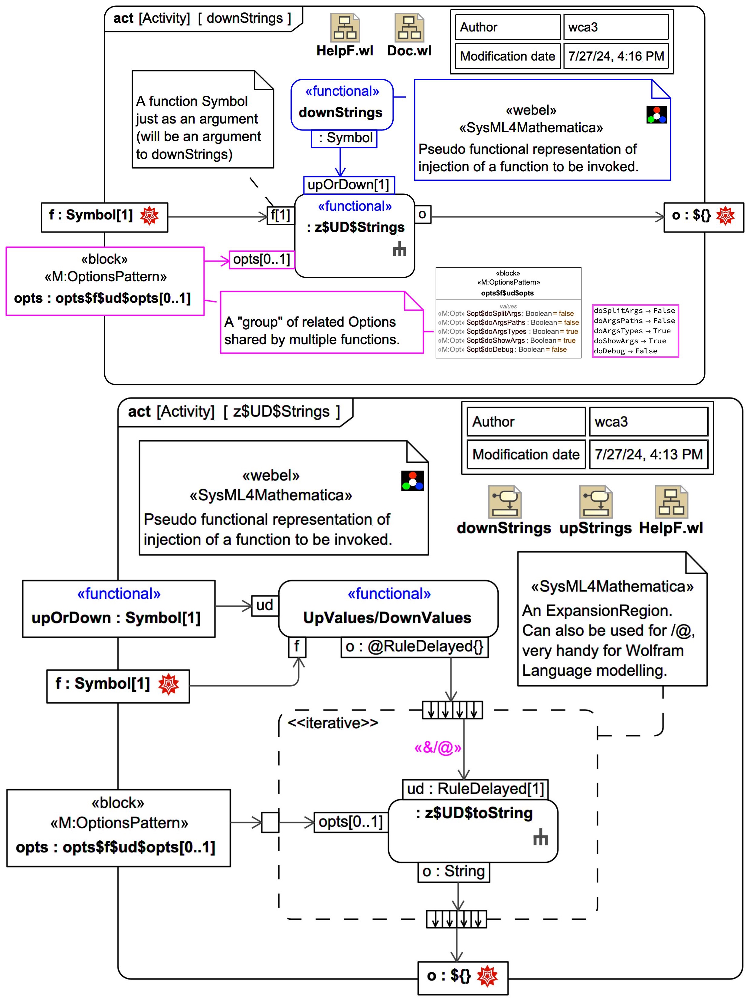 In Webel SysML4Mathematica (v1) the custom Stereotype «functional» indicates a "pseudo functional" representation of functional in SysML. There are limits to representation of functional programming in SysML, but it can be informative and is worth doing.