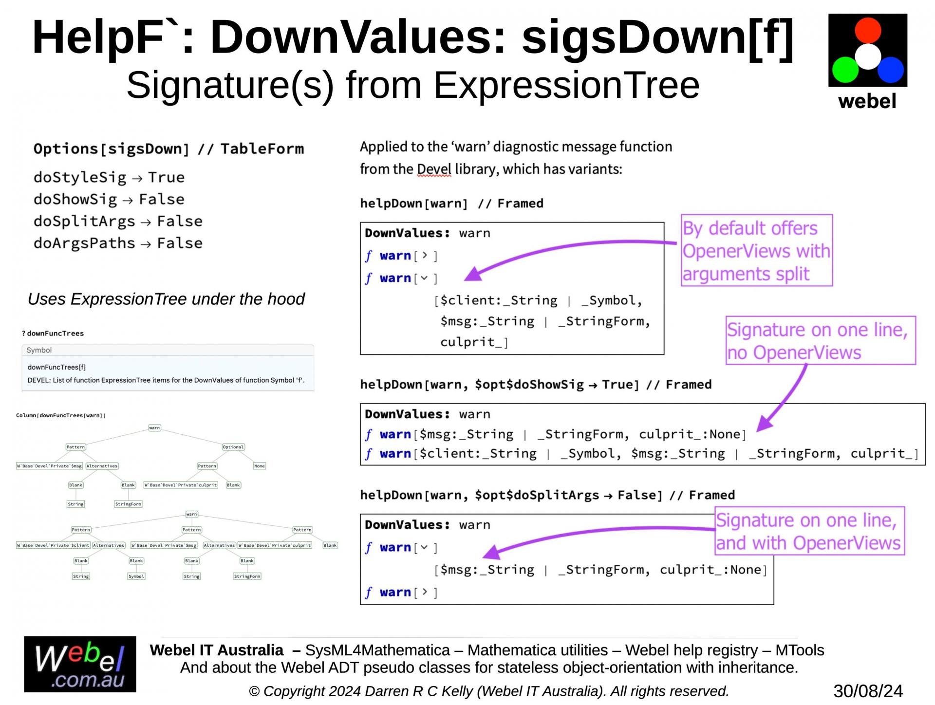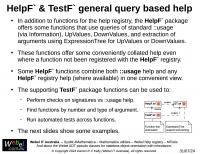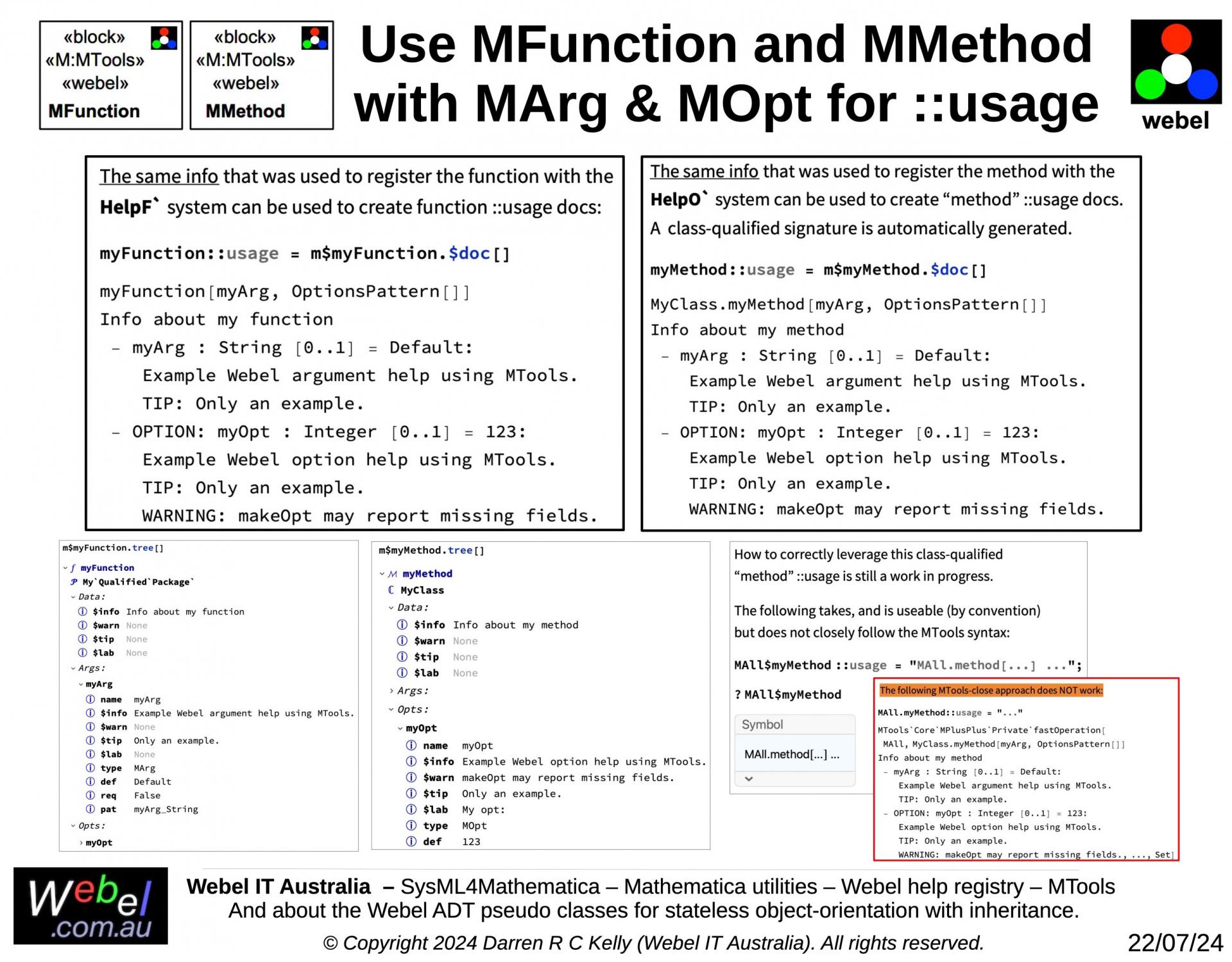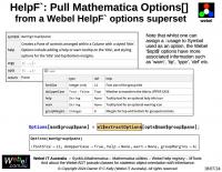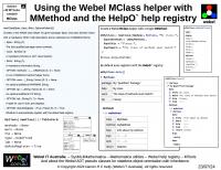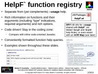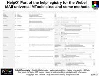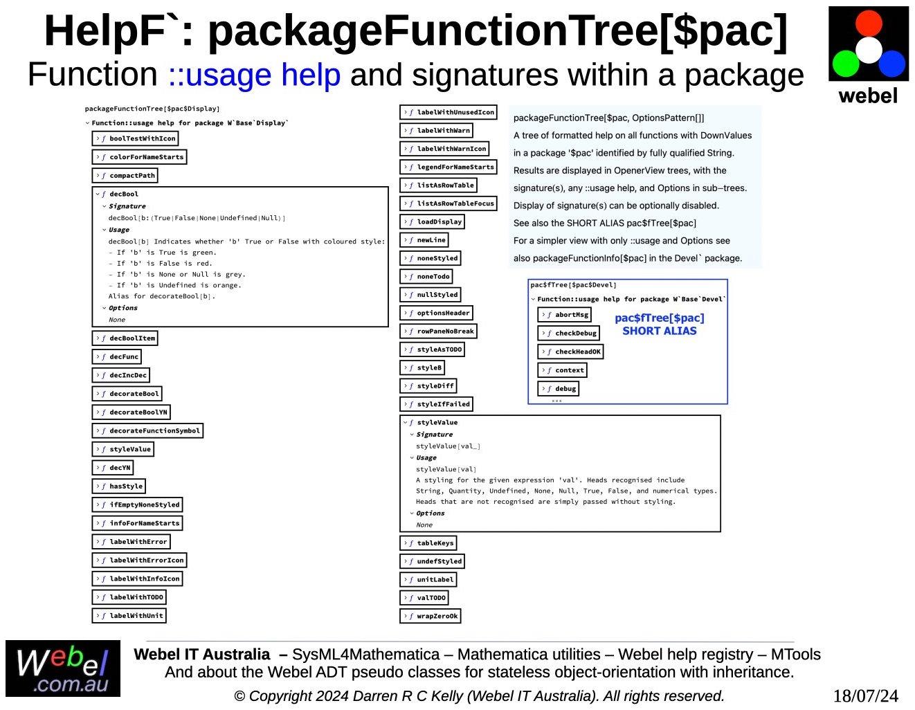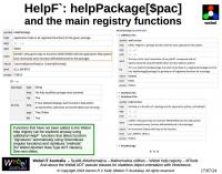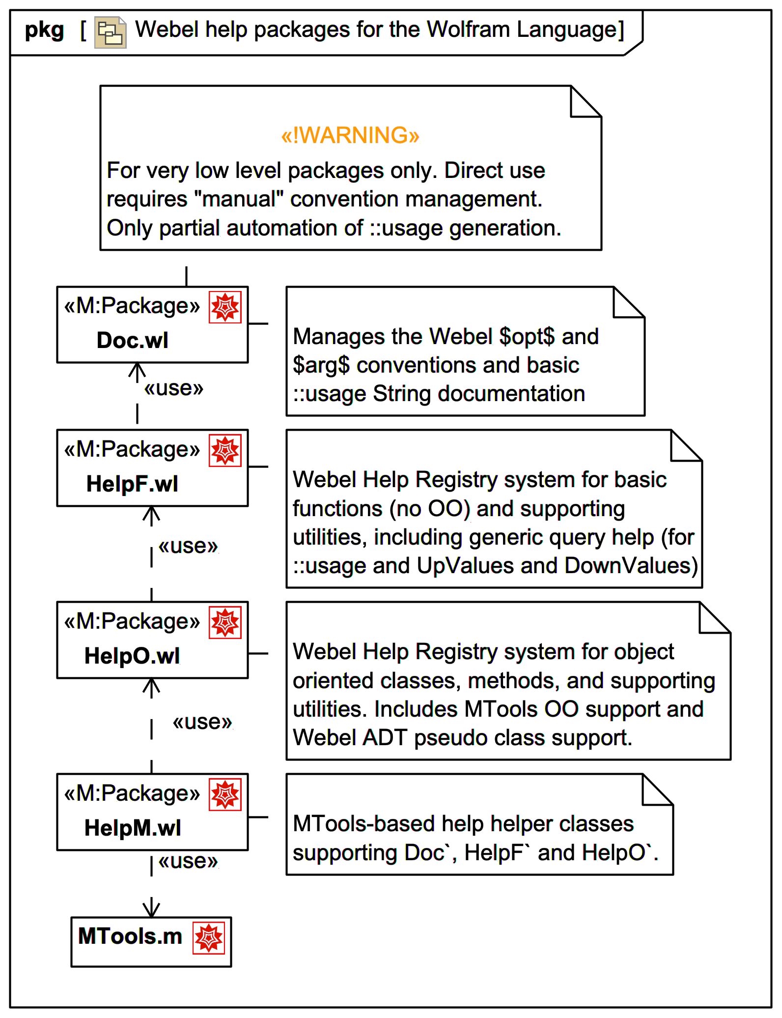 String generation) and the HelpF` package for the Webel code-oriented function help registry, and the HelpO` package for the class and method help registry (which was the original impetus for creating the help registries approach).