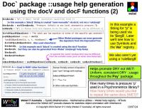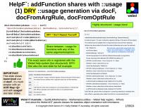 In any case, these code-oriented Webel help packages have proven extremely useful for maintaining and documenting very complex applications, make heavy use of Single Source of Truth (SSOT) and Don't Repeat Yourself (DRY) principles, and add support for structured documentation of arguments and options.