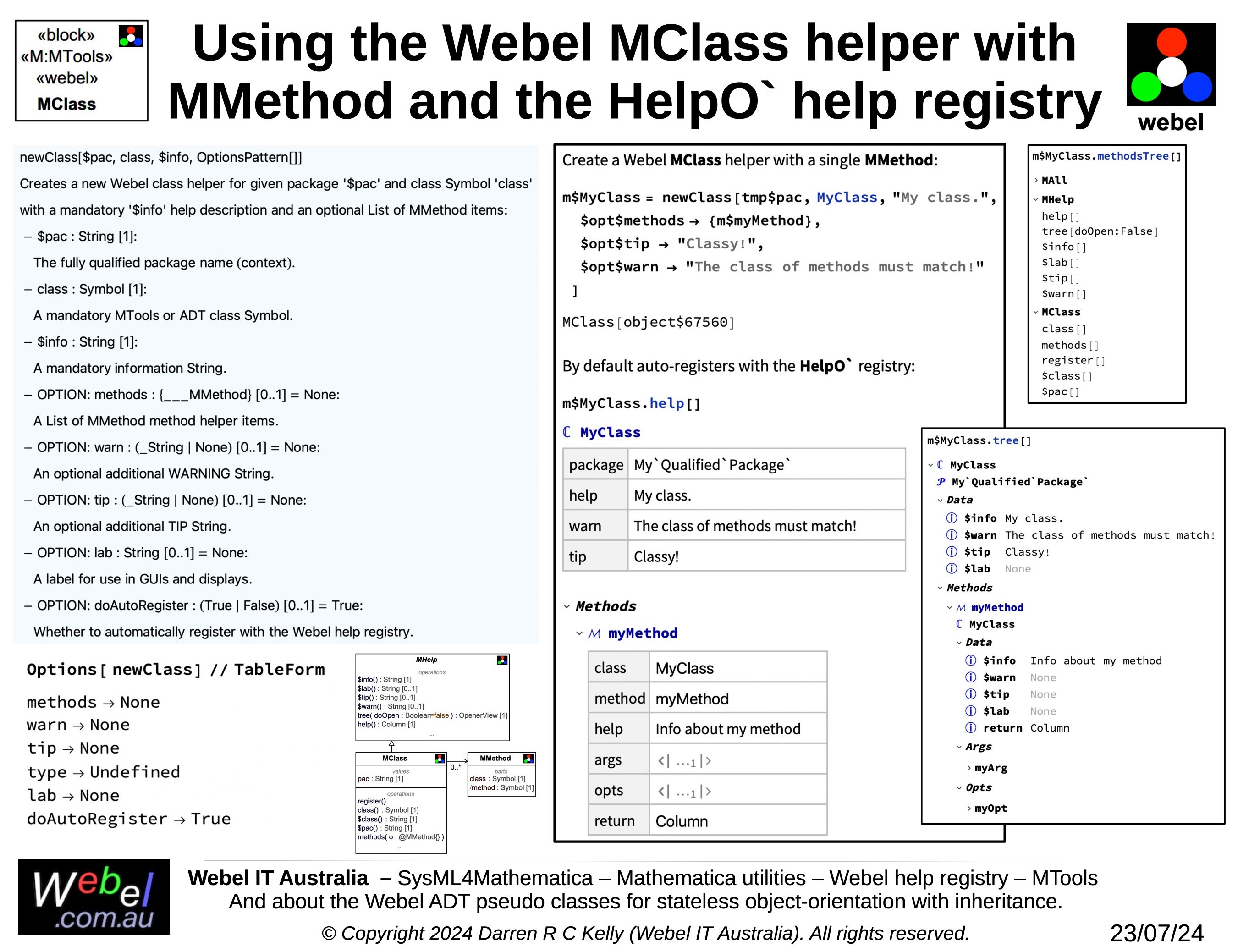 HelpM`: Using the Webel MClass helper with the MMethod helper and the HelpO` help registry