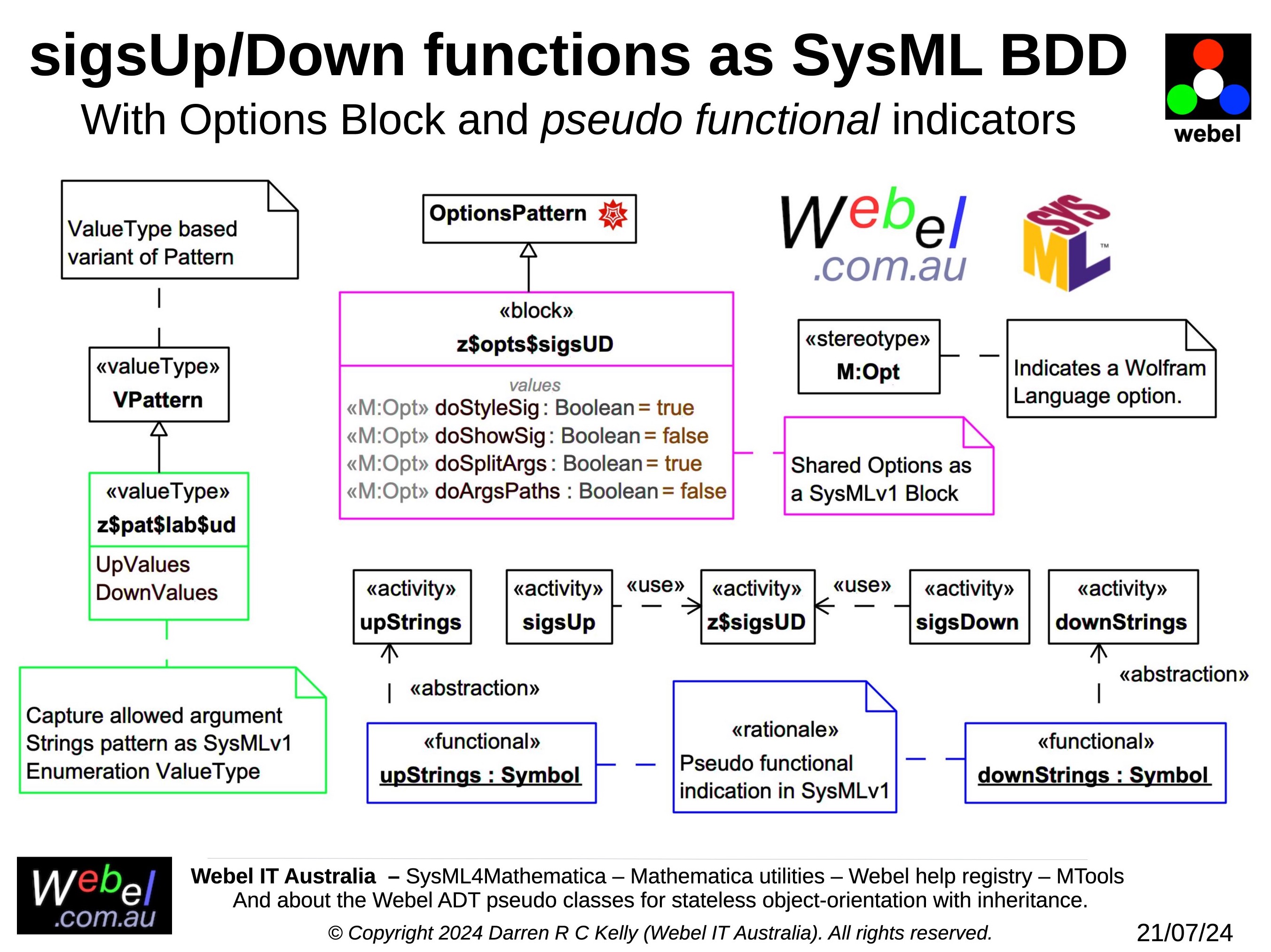 [CONVENTION, NAMING, PATTERN, POLICY]{RECOMMENDED} Webel: Mathematica: CONVENTION: The Stereotype keyword «functional» indicates a "pseudo functional" representation of functional in SysML. There are limits to representation of functional programming in SysML, but it can be informative and is worth doing.