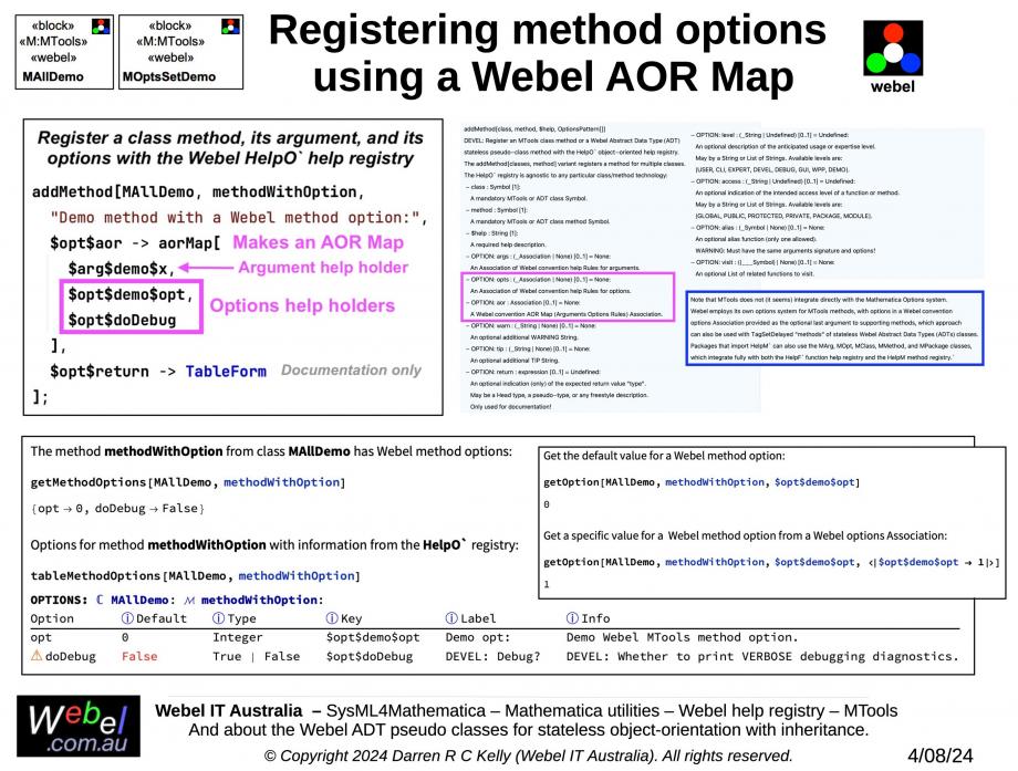 Registering method options using a Webel AOR (Argument, Options, Rules) Map