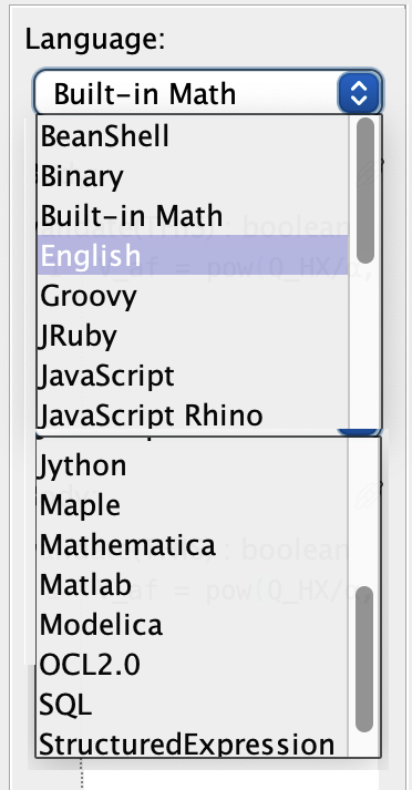 Cameo Simulation Toolkit handles OpaqueExpression and OpaqueBehavior including these action scripting languages: English (built-in), Alf (via plugin), BeanShell, JavaScript, JavaScript Rhino, Groovy, ...