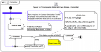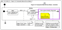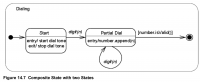 The notation of 'Figure 14.7 Composite State with two States' shows some states for dialing a telephone number, with a composite state Dialing
