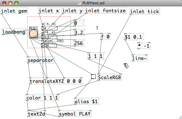 Note the diligent use of variables offered via the patch GUI for fine adjustment of the position and font size. It really helps to be able to experiment quickly with instant feedback to get things just right.