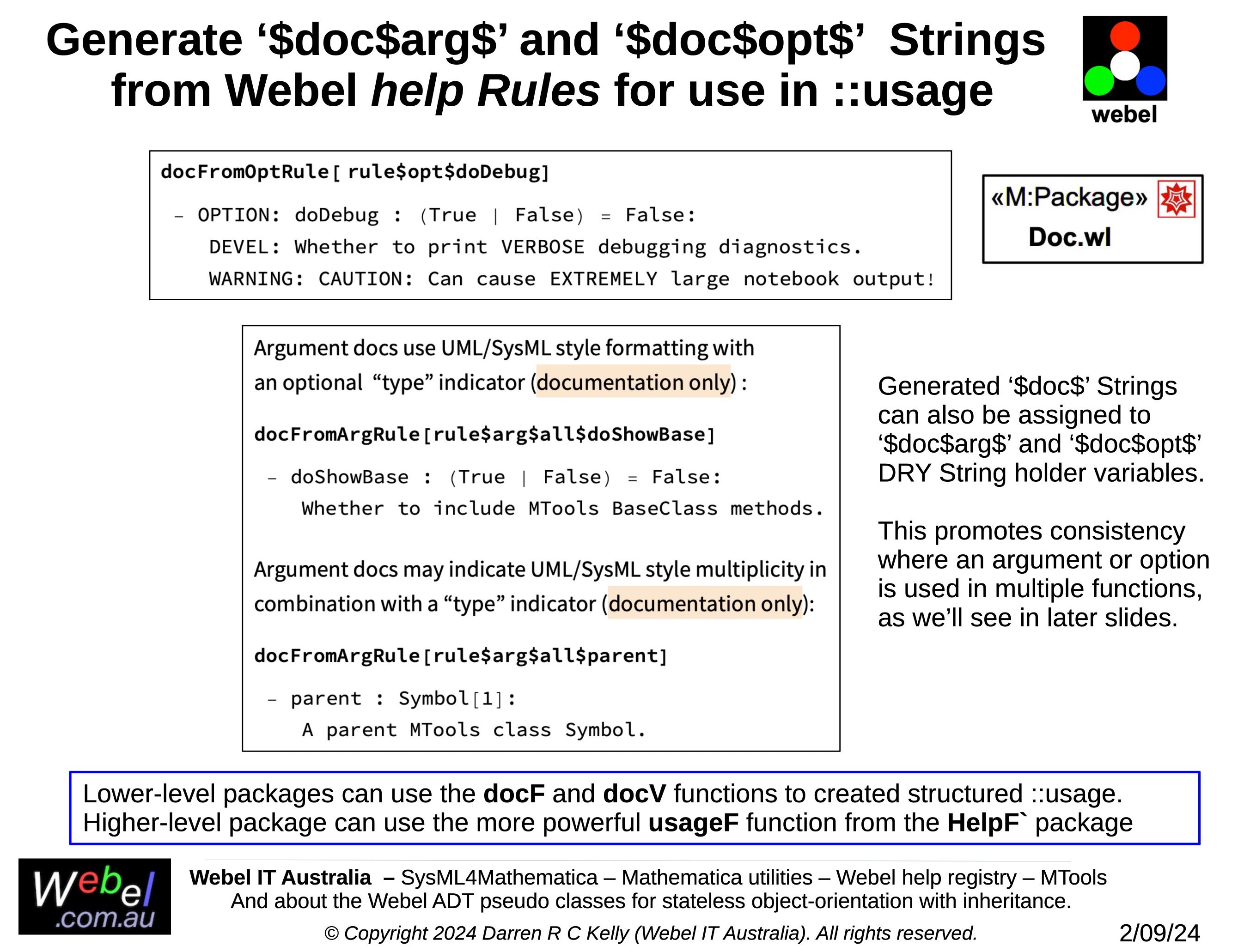 Easier ‘$arg$’ and ‘$opt$’ help Rules using the Webel MArg and MOpt helper classes and MTools for OO