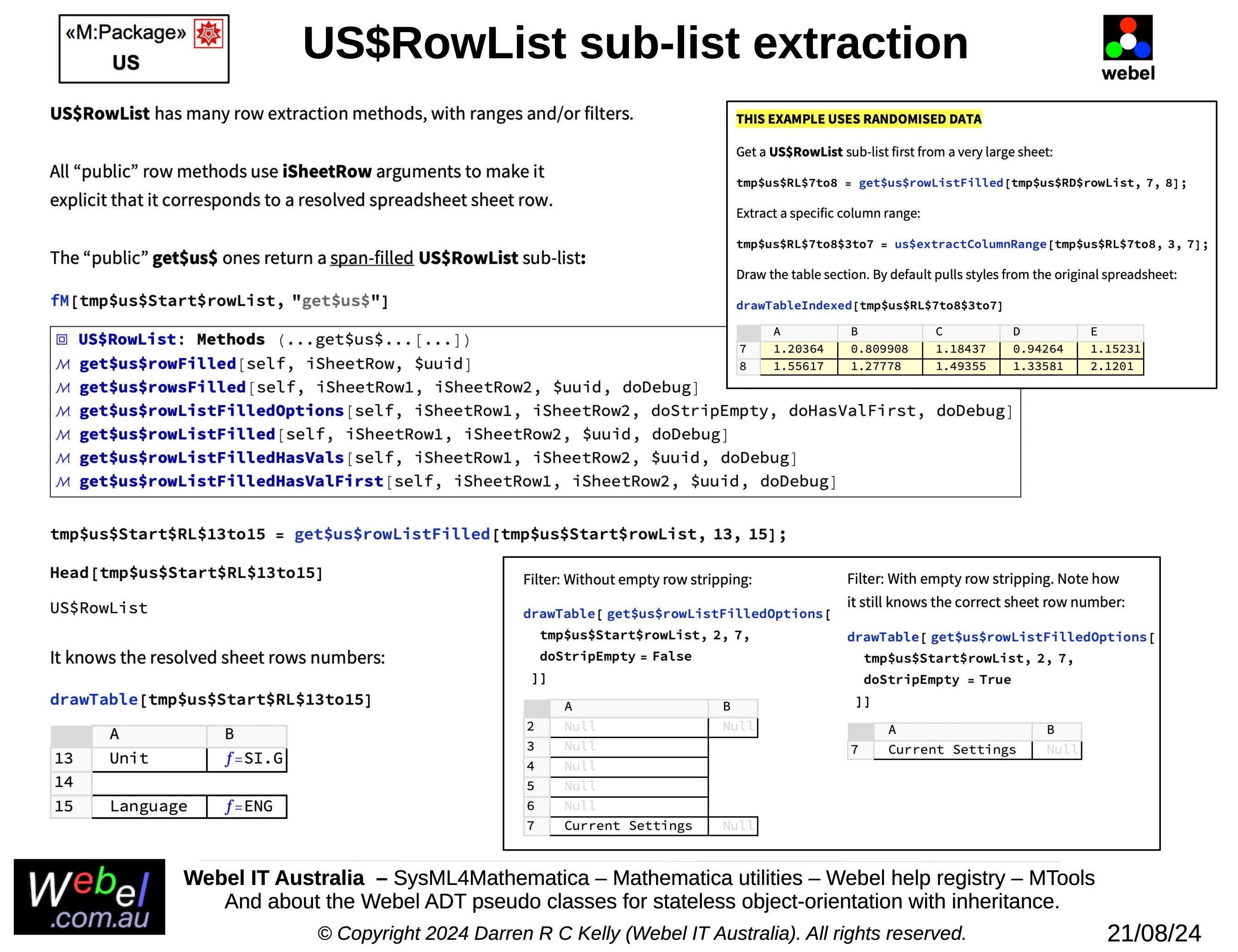 US$RowList sub-list extraction