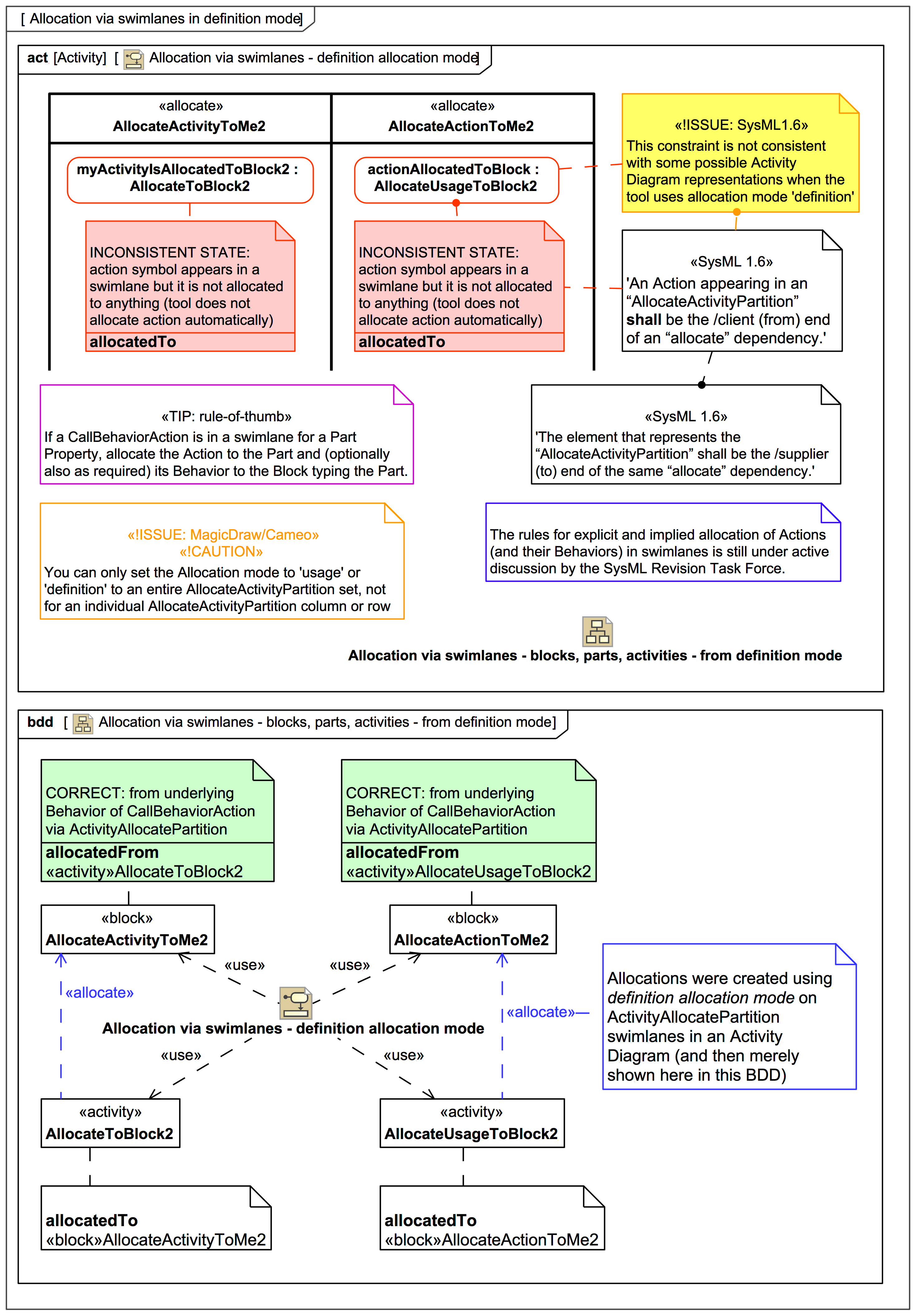 Allocation via swimlanes in definition allocation mode - DOs and DON'Ts