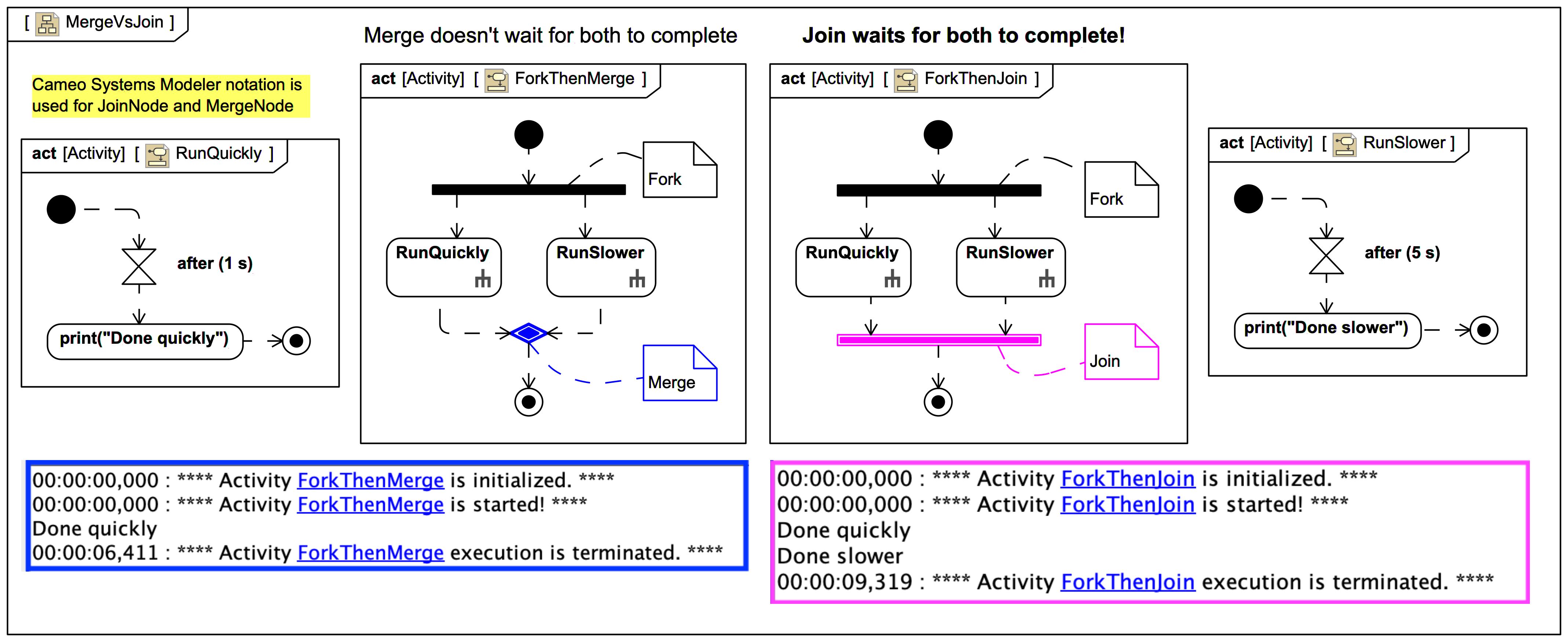 This informal narrated screencast records some Activity and StateMachine simulations in Cameo Simulation Toolkit.