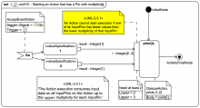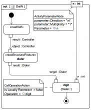 Within an Activity, inputs to and outputs from an Activity are handled using ActivityParameterNodes.