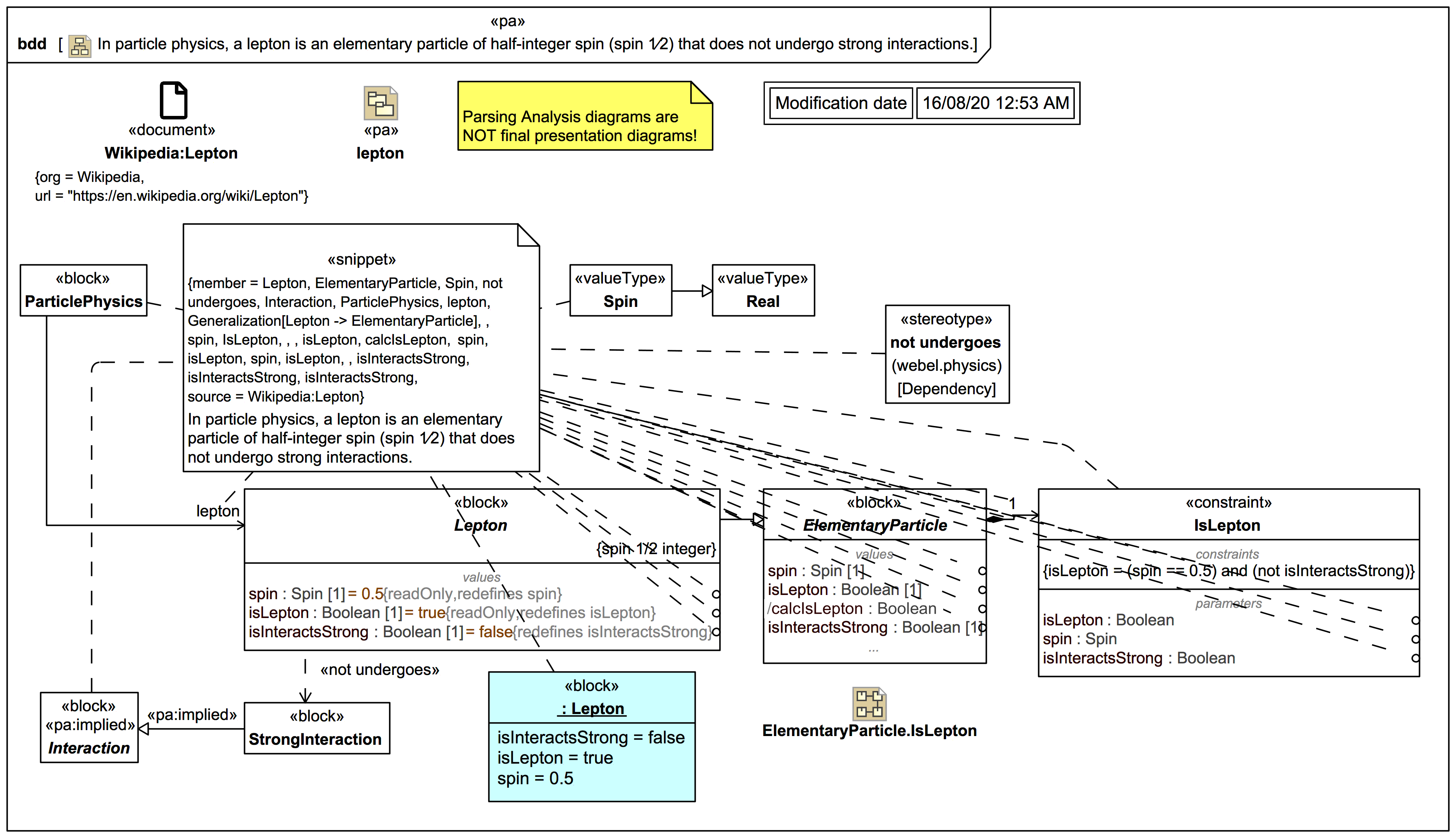 TRAIL: Webel SysML Parsing Analysis example: A particle physics taxonomy from Wikipedia