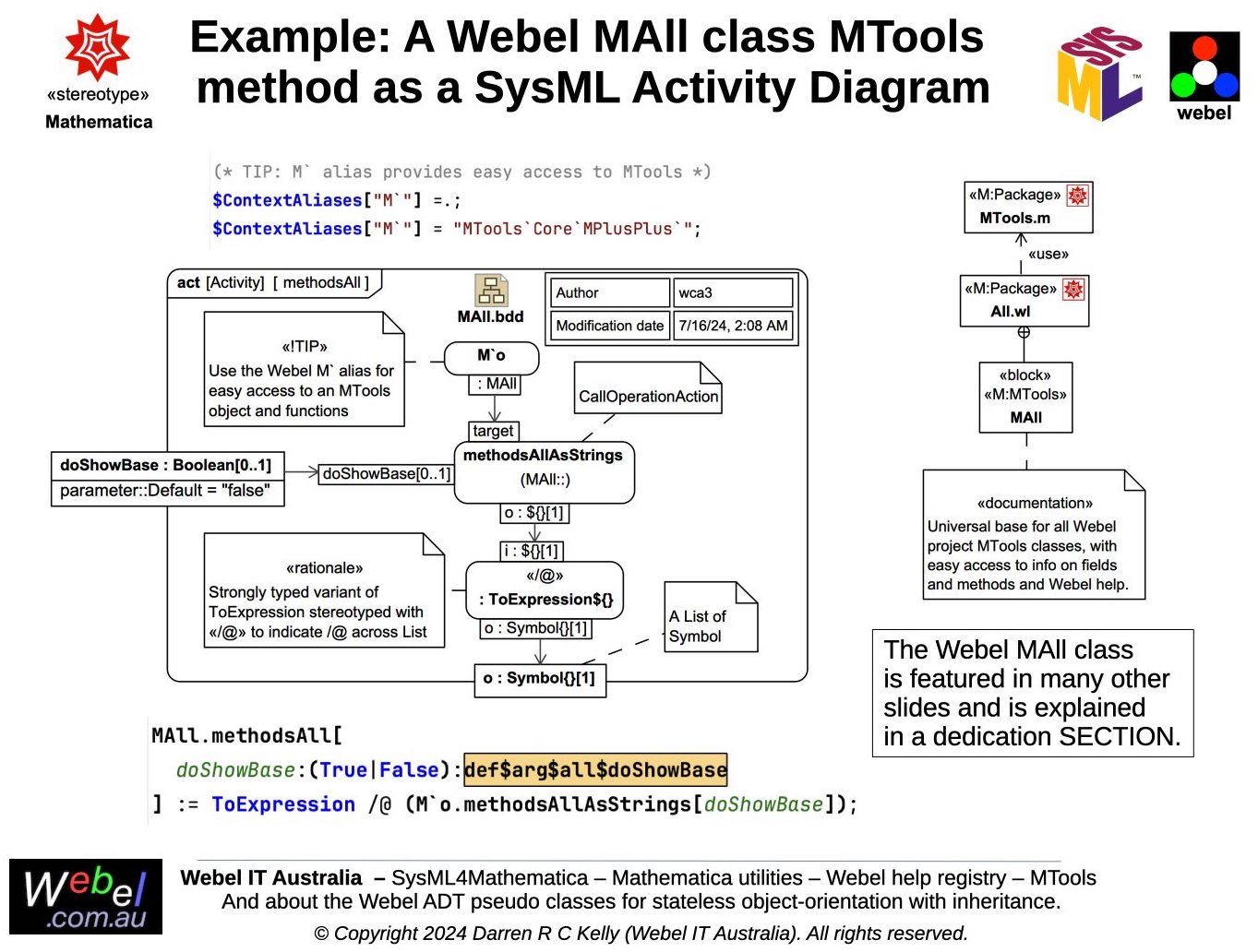 SysML Activity with @pseudo functions capturing Wolfram Language logic